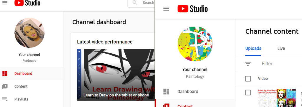 Two YouTube channels having video tutorials on Paint by Numbers using the Paintology drawing app