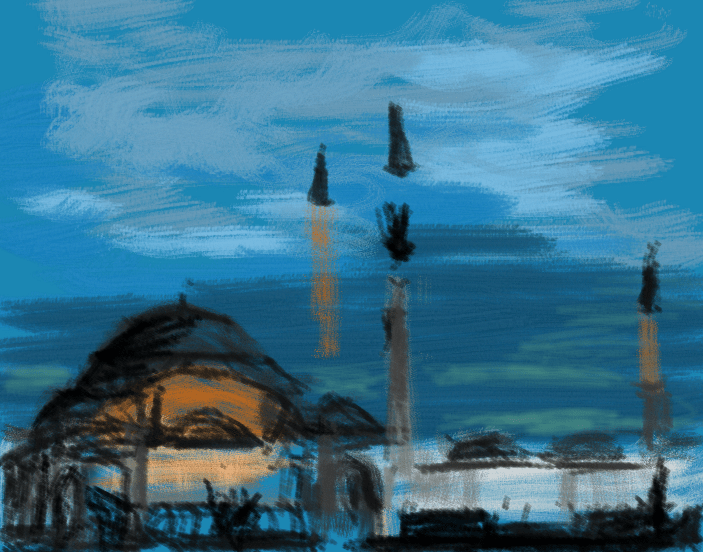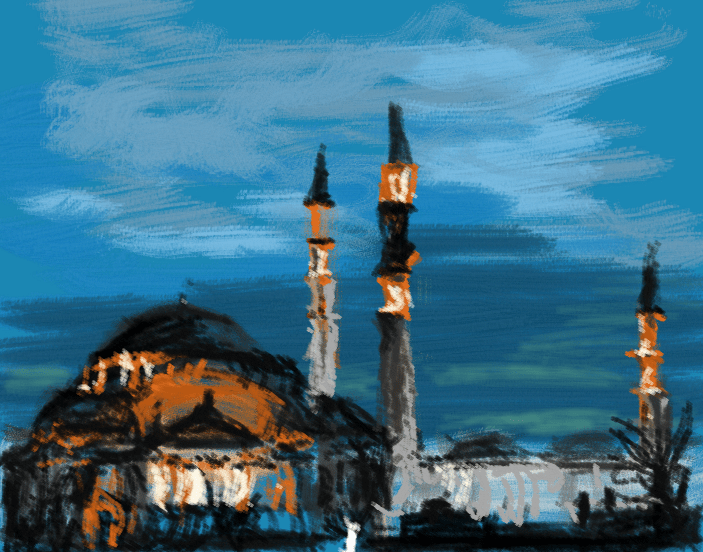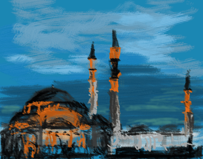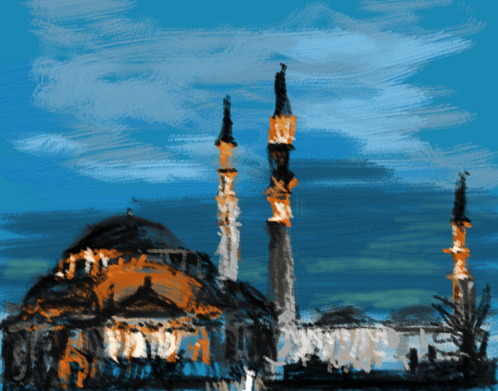 A painting of a mosque in Istanbul, Turkey using Paintology