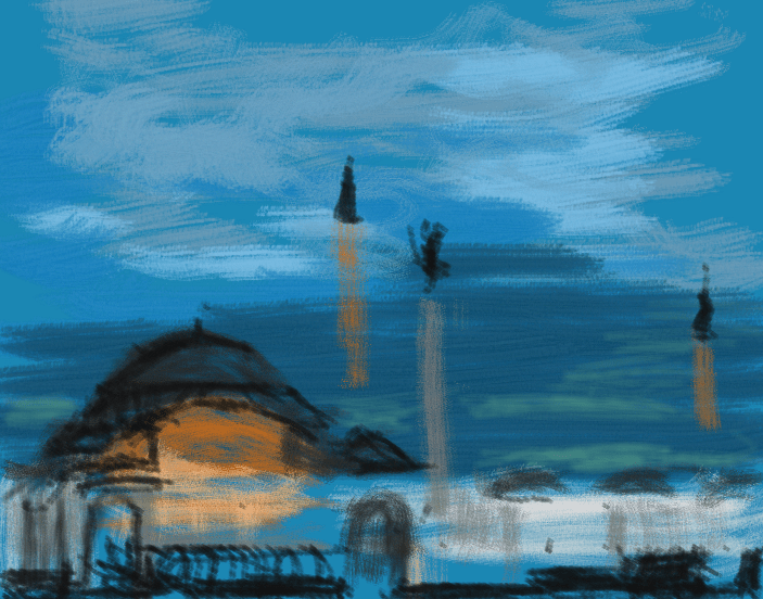 Fig. 1 shows a painting of a mosque in Istanbul, Turkey and is a familiar site in the skyline if you have ever visited Istanbul. The architecture of these famous mosques are breathtaking with the domes breaking the longitudinal lines of the city sky and the minarets jutting out into the sky. The painting produced using the Paintology app was done on a 8 inch tablet and using the home-made stylus pen.
