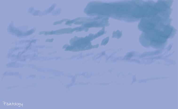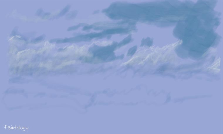 Picking out a light blue canvas, I start by painting the clouds using the spray tool as shown in fig. 2. Don’t worry about the details yet, we are simply filling in areas where various parts of the painting will be.