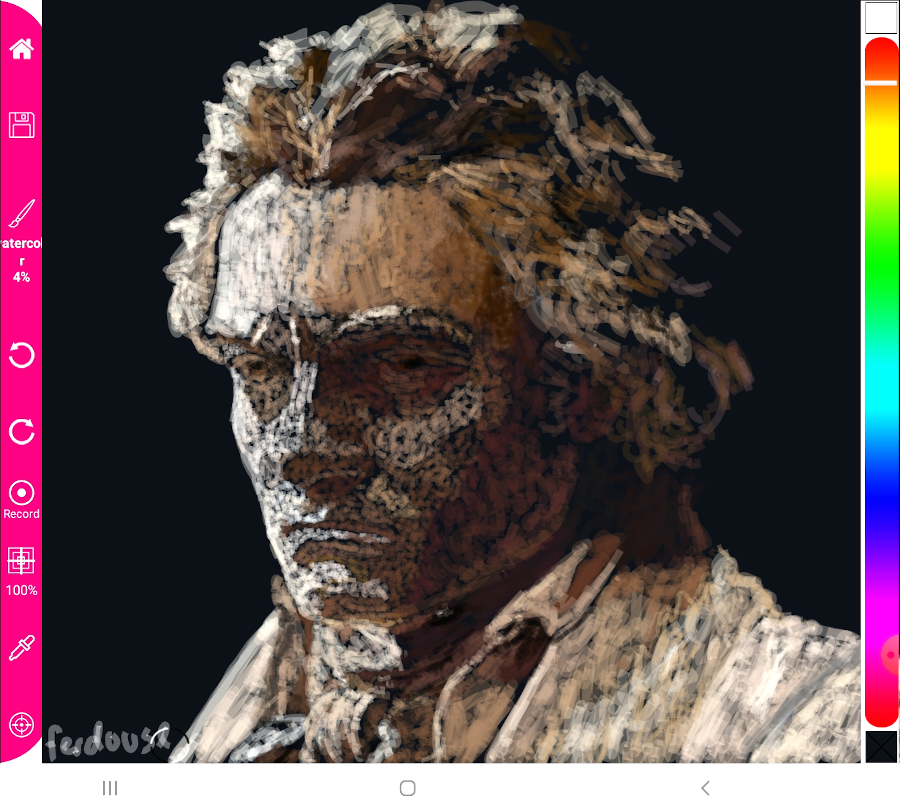 This is a familiar brush that I have used often when I did many paintings using the 32 inch touch screen device. You can see some of my works using this brush if you visit the Ferdouse Youtube channel. The reason, I like this brush is because it almost creates a paint like quality when you start drawing with it and works well for people who come from a traditional painting and drawing background.