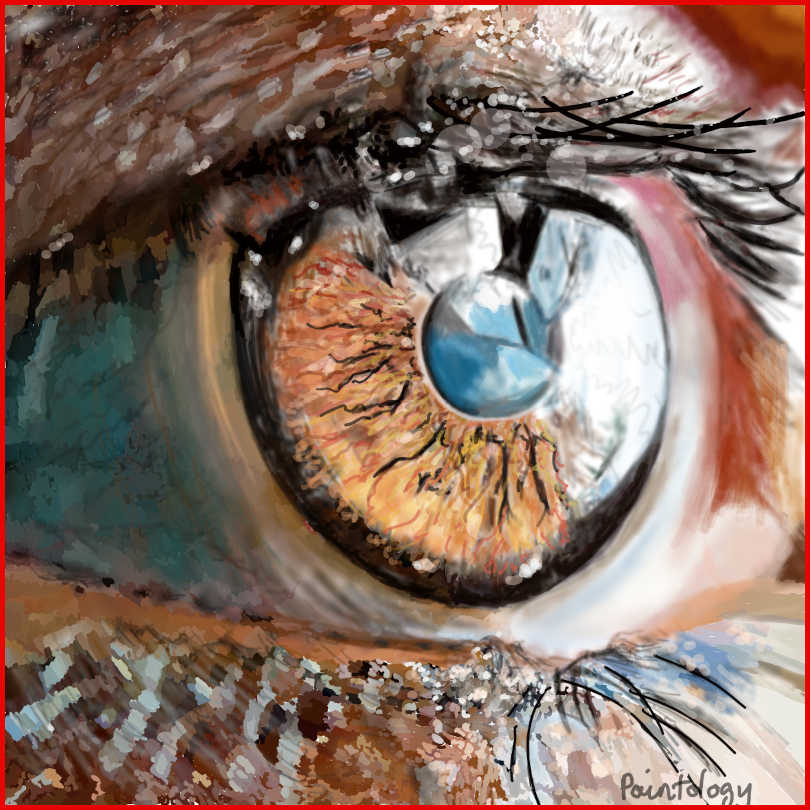 What I found is that the Hay Wain painting has a neutral balance to it and I could cover the whole screen with just block painting and final tweaks. However, when doing the eye above, I noticed sharp and defocused areas of the image which made the drawing more difficult with just the block method. This may have been a mistake on my part choosing this image but at that time I wasn't thinking about this until I actually got into the drawing.