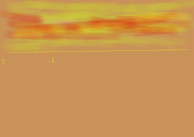 We first create the clouds using the ‘dark haze’ tool set to half way for density and hardness and as you can see the strokes are left and right (fig. 2). Since sunsets usually have skies with a yellow and red tinge to it, I use these colors using the same brush tool. Towards the sea bed, I try to make the brush size smaller to create a sense of distance into the far horizon.