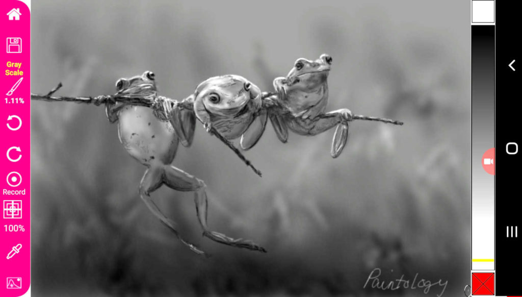 Most of the drawings made with the Paintology app are actually done with one or two brushes and selecting the colors from the color palette. With practice, you can make many types of drawings including pencil drawings like the one shown below.