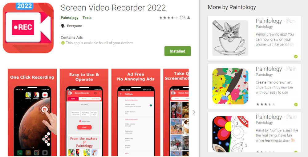 This app has no intrusive ads and has an intuitive way to record video and capture screens on your Android phone or tablet. The best way to fully appreciate this app is simply to install it and if it does not fit your needs simply uninstall it.