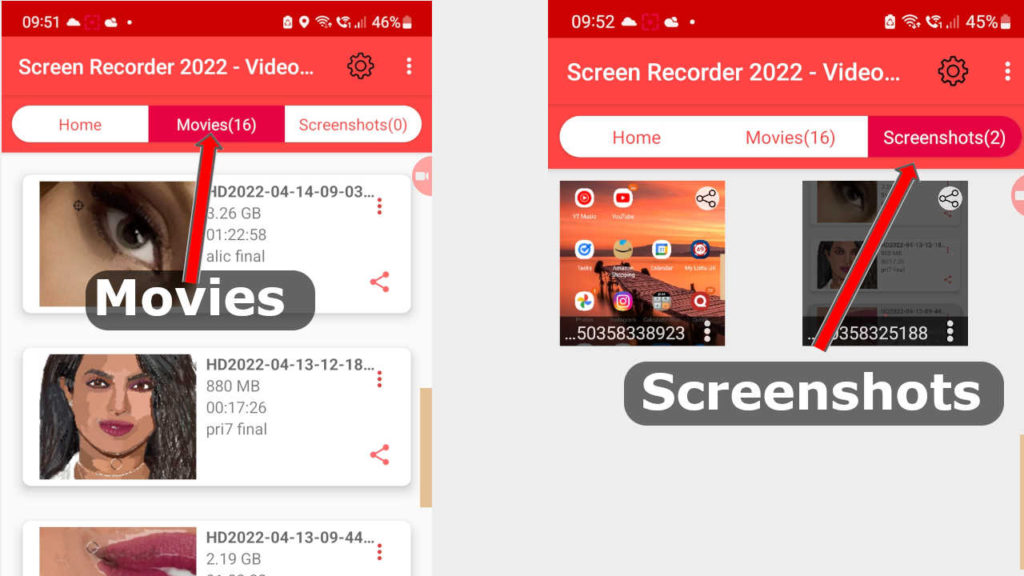Another intuitive feature of the Paintology recorder app 2022 over other apps, are the saved files of the movies and screenshots. Naturally, you want easy and quick access to the saved files for sharing or doing some other editing of some kind.