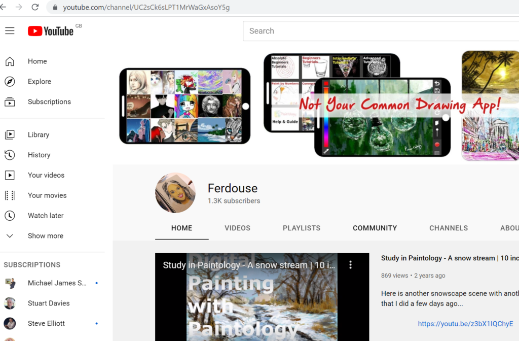 The Paintology and Ferdouse YouTube channels are dedicated to people who enjoy drawing and painting as a pastime. Only when you embark on this hobby that you can truly appreciate it the joy and feeling that it brings and unfortunately many people miss that opportunity.